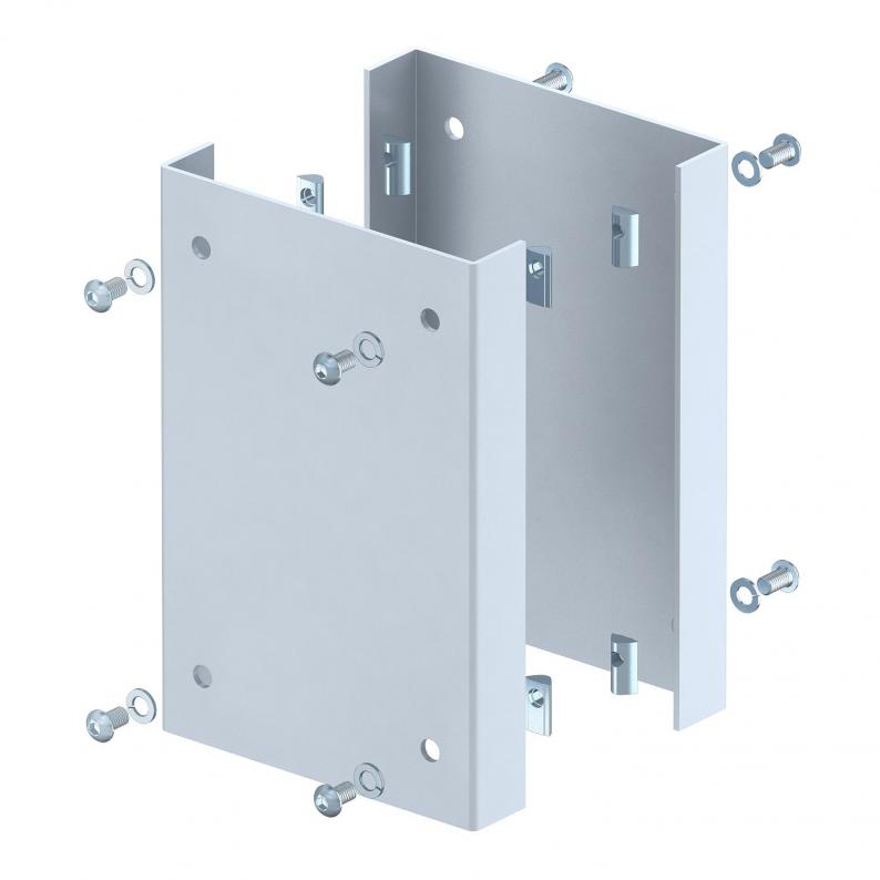 Anfahrschutz als mechanischer Schutz der ISS-Industriesäule im Bodenbereich. Im Lieferumfang enthalten sind 2 U-förmige Schutzprofile aus 3 mm Stahlblech und 8 Befestigungsschrauben mit Nutensteinen zur Montage am Säulenprofil.