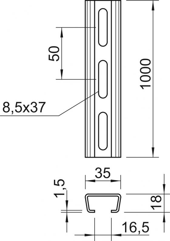 Ankerschiene AML3518, Schlitz 16,5 mm, FS, gelocht