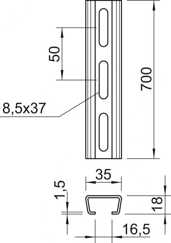 Ankerschiene AML3518, Schlitz 16,5 mm, FT, gelocht