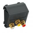Audio/Video-Cinch-Anschluss, 1 Modul, Auslass schräg, als 1:1-Kupplung, schwarzgrau
