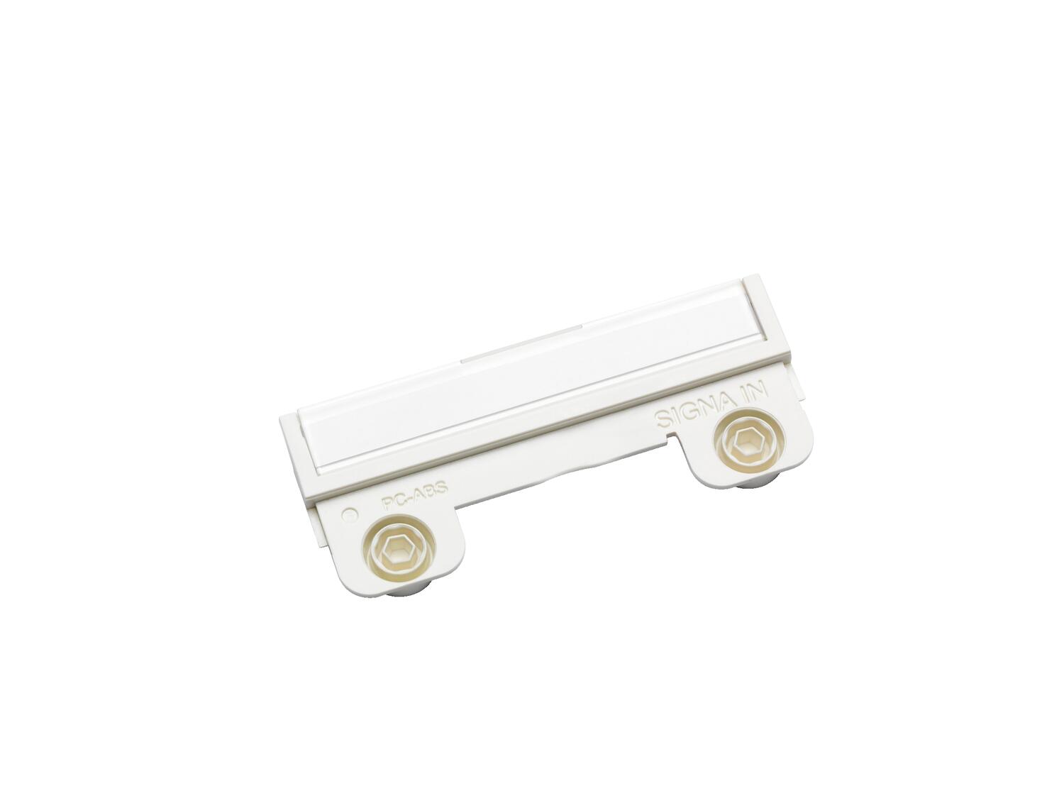 Signa In Beschriftungsfeld vertikal, wird seitlich in den Blendrahmen der Kanalsteckdosen Signa In eingerastet.
