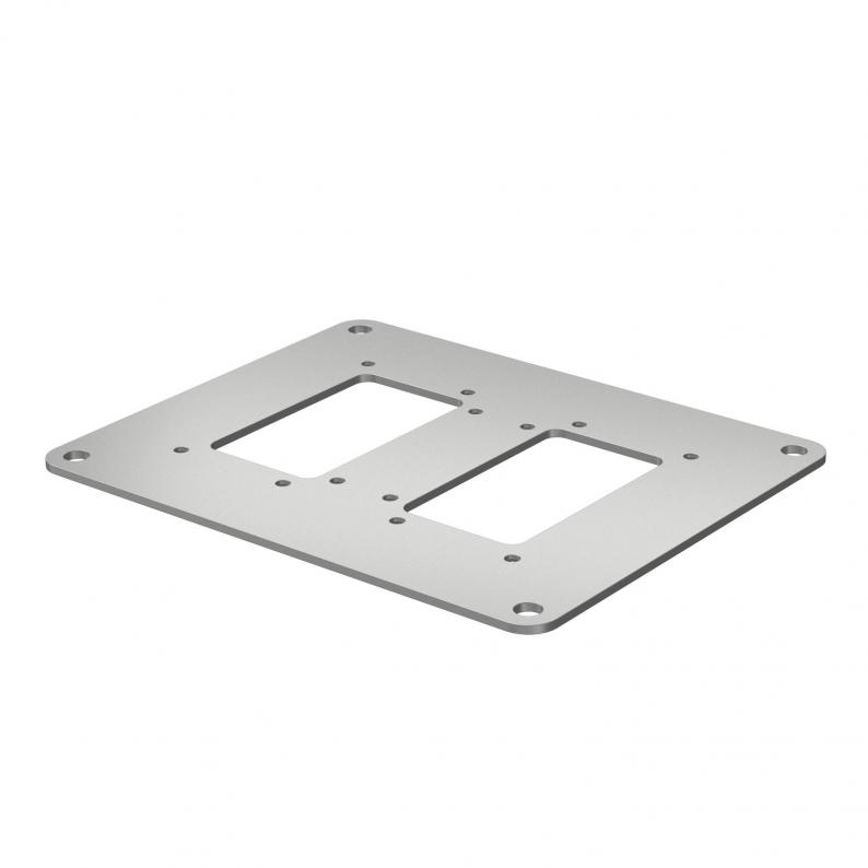 Bodenplatte zur Befestigung der ISS140100R auf dem Boden. Die Bodenplatte mit sichtbarem Rand hat 4 Befestigungslöcher Ø 8,5 mm.