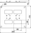 Bodenplatte mit 30 mm sichtbarem Rand und 4 Befestigungslöchern Ø 8,5 mm. Die Bodenplatte eignet sich zur Montage von Installationssäulen vom Typ ISS140110.