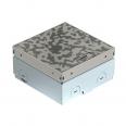 Quadratische Bodensteckdose für den Einsatz in trocken gepflegten System- und Estrichböden im Innenbereich. Einbaugehäuse mit vorgeprägten Einführungsöffnungen für Rohre (M20/M25). Oberteil durch 4 Nivellierstützen auf Oberkante Bodenbelag einstellbar. Die Mindesteinbautiefe beträgt 75 mm, der Nivellierbereich + 30 mm. Im Bodenbelag sichtbarer Rahmen und Deckel aus Edelstahl. Deckel mit Dekorplatte Spots. Leergehäuse für ein Modul 45®-Installationsgerät und eine Datenbuchse. Der Einbauplatz für die Datenbuchse ist im Auslieferungszustand mit einer Blindplatte verschlossen.