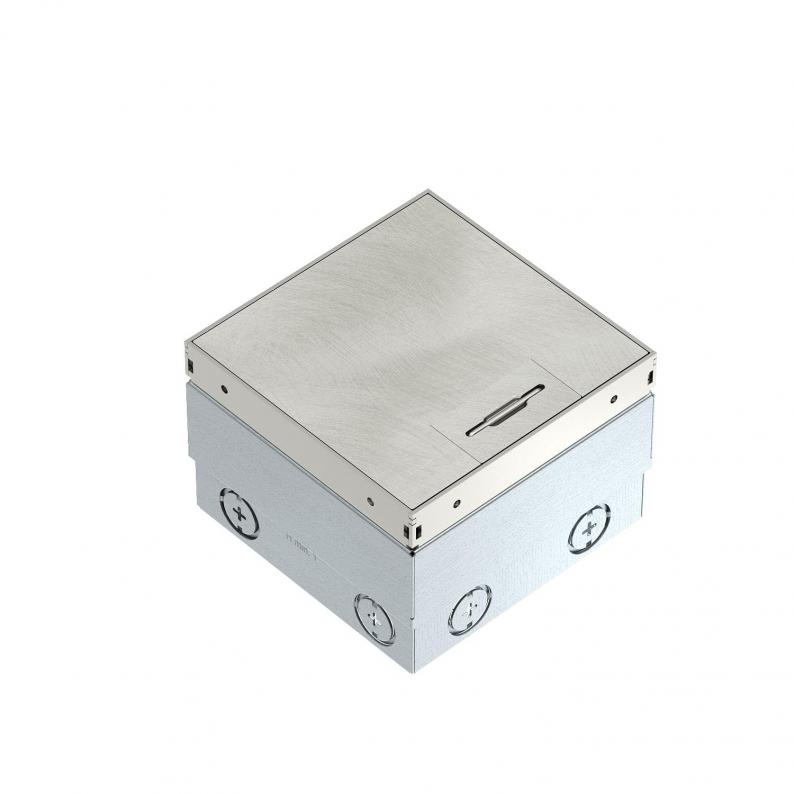 Quadratische Bodensteckdose für den Einsatz in trocken gepflegten Hohlböden und Estrichböden im Innenbereich. Einbaugehäuse mit vorgeprägten Einführungsöffnungen für Rohre (M20/M25). Oberteil durch 4 Nivellierstützen auf Oberkante Bodenbelag einstellbar. Die Mindesteinbautiefe beträgt 100 mm, der Nivellierbereich + 35 mm.