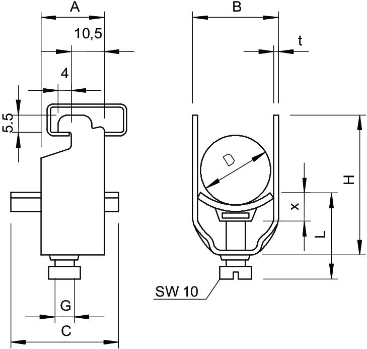 Bügelschelle, 1-fach Kunststoffdruckwanne, ALU