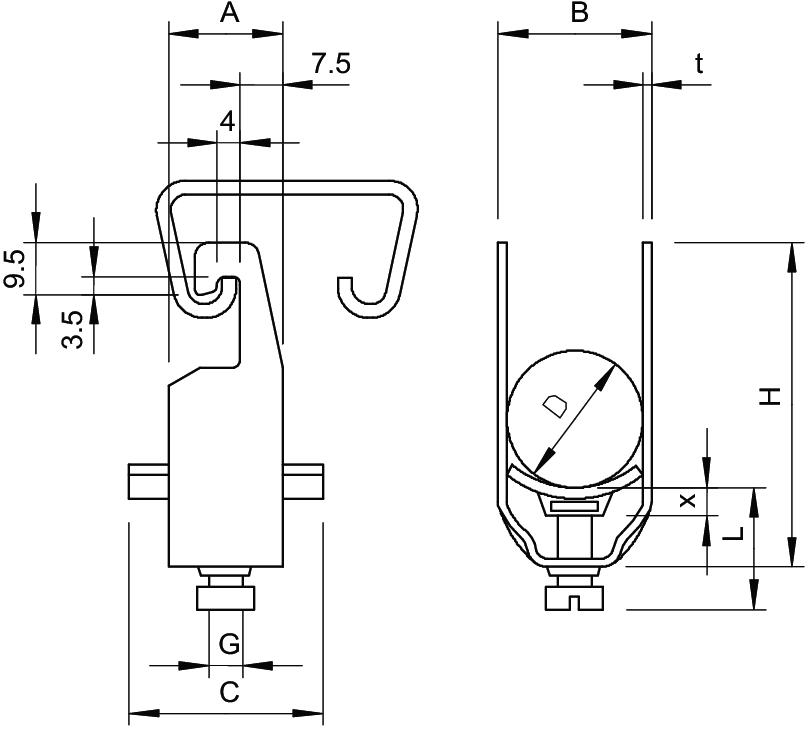 | für Schiene mit Schlitzweite (mit Intervall) max. | 22 mm |