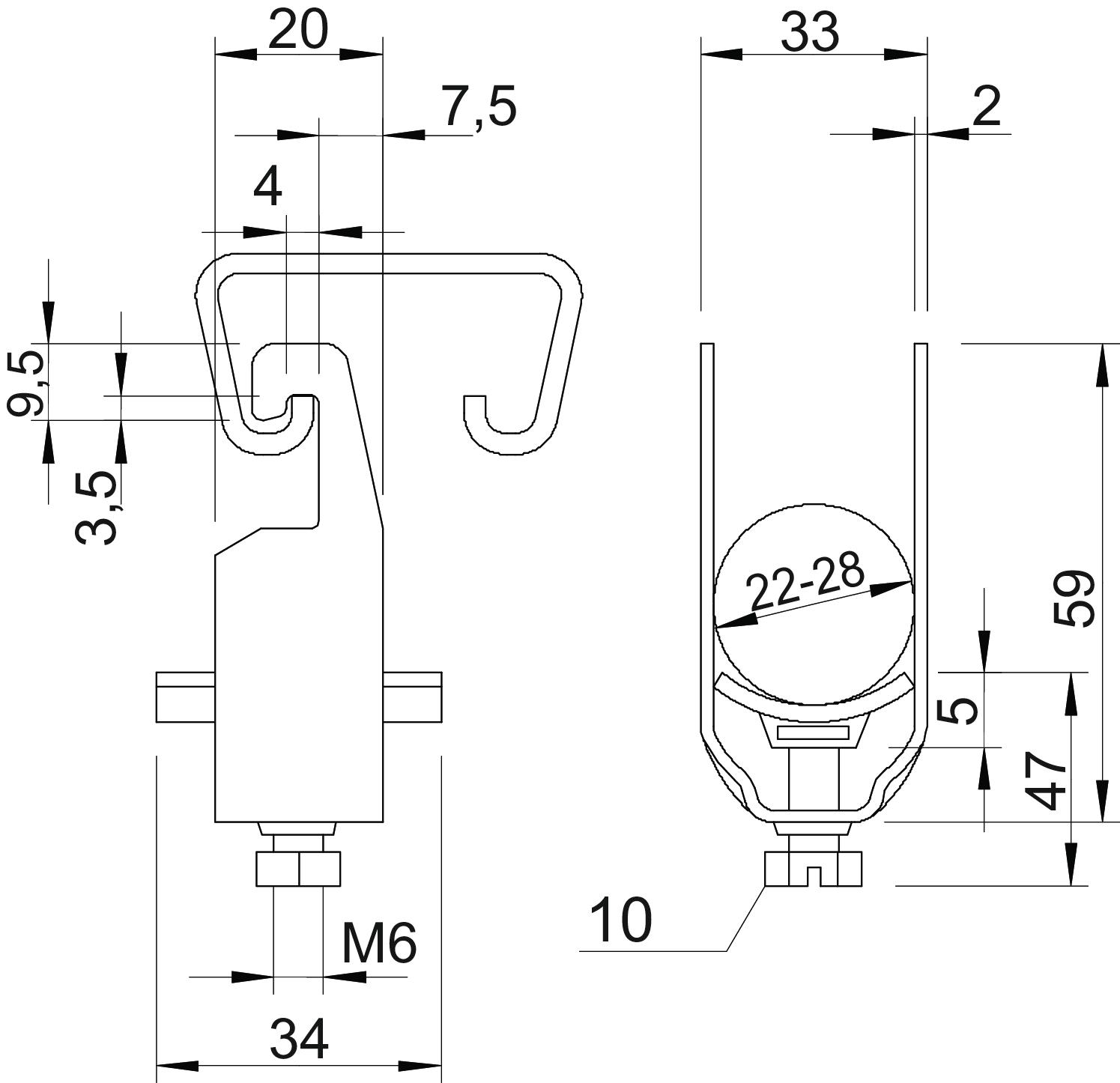 | für Schiene mit Schlitzweite (mit Intervall) max. | 22 mm |