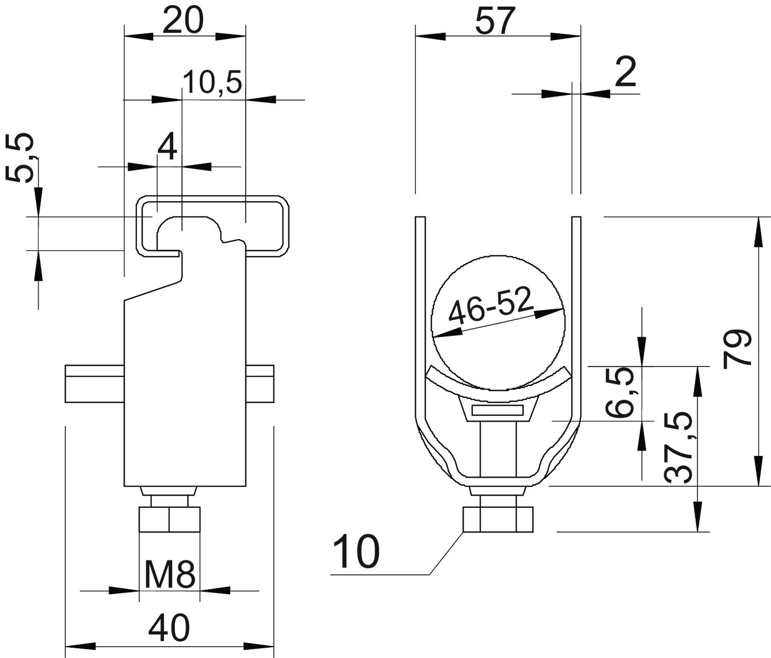 • Bügelschelle f. C-Profilschiene, Schlitzweite 11-12 mm