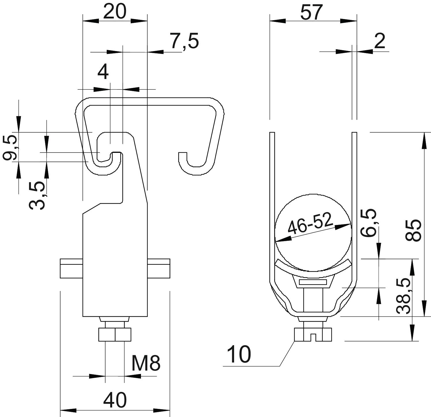 | für Schiene mit Schlitzweite (mit Intervall) max. | 22 mm |