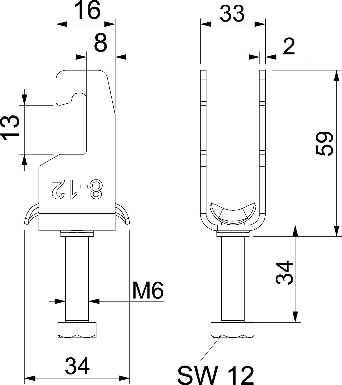 • Bügelschelle f. C-Profilschiene, Schlitzweite 18-22 mm