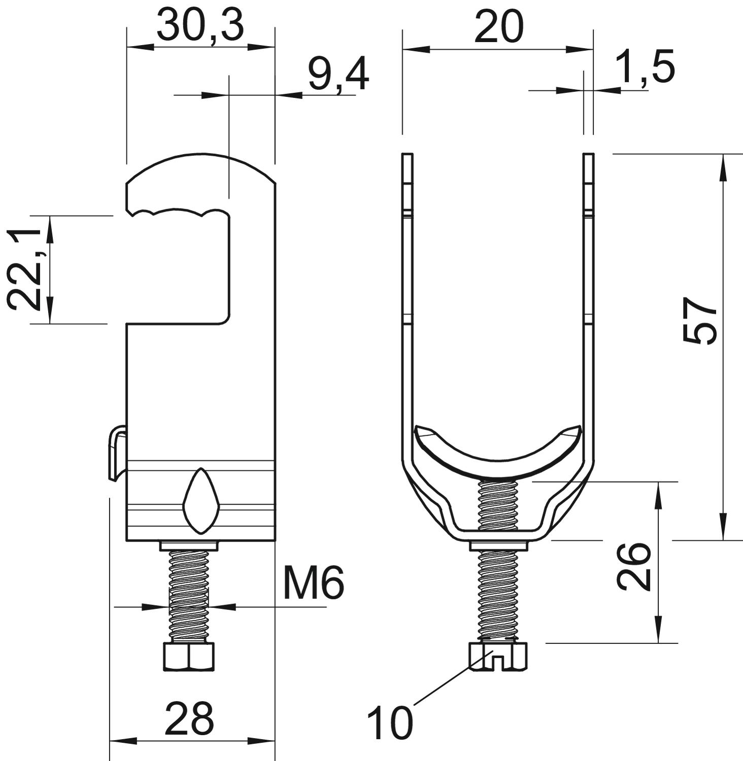 Bügelschelle, 1-fach Metalldruckwanne, Rundprofile/Rohre