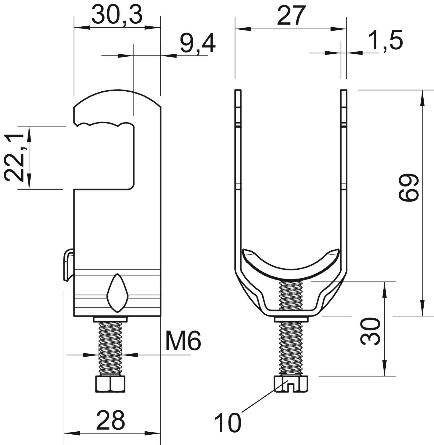 Bügelschelle, 1-fach Metalldruckwanne, Rundprofile/Rohre
