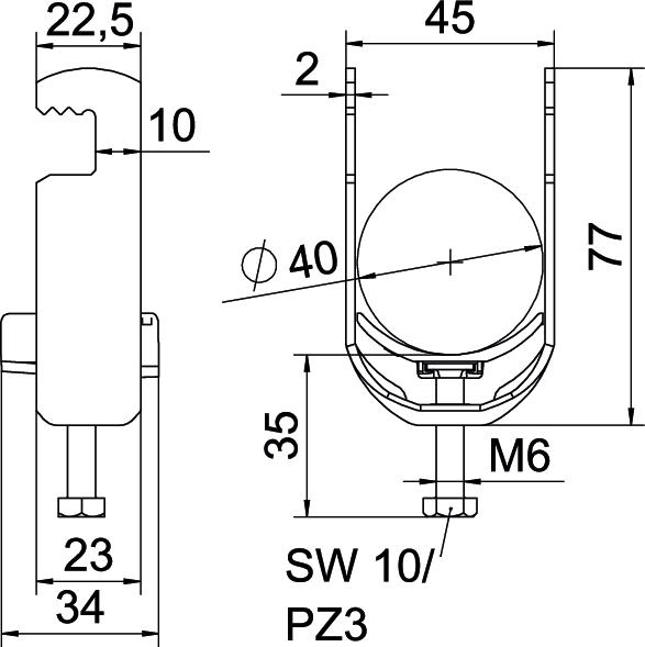 Bügelschelle mit F-Fuß, Kunststoffdruckwanne aus Polypropylen. Zur vertikalen und horizontalen Montage von 1 Einzelkabel an Flacheisen. Mit 1-gängiger Schraube an Druckwanne, universeller Sechskant-Schraubenkopf SW10, mit Schlitz und Kreuzschlitz. Geeignet für Montage im Innen-und Außenbereich. Der Einsatz einer Gegenwanne wird empfohlen.