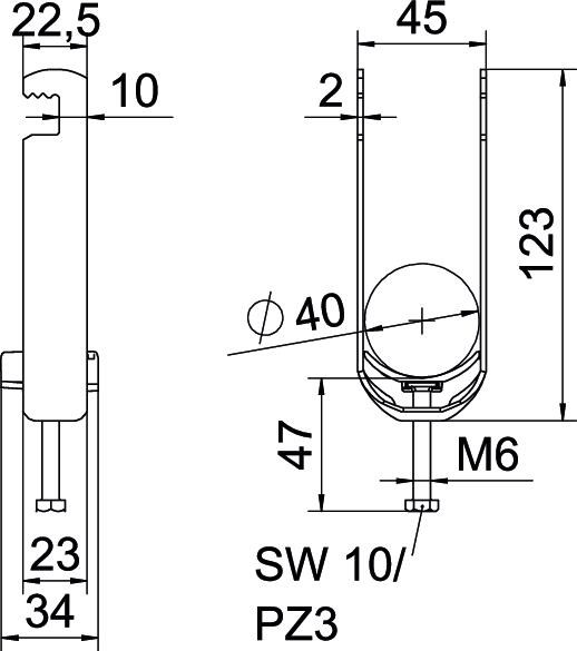 Bügelschelle mit F-Fuß, Kunststoffdruckwanne aus Polypropylen. Zur vertikalen und horizontalen Montage von 2 Einzelkabeln an Flacheisen. Mit 1-gängiger Schraube an Druckwanne, universeller Sechskant-Schraubenkopf SW10, mit Schlitz und Kreuzschlitz. Geeignet für Montage im Innen-und Außenbereich. Mehrere Kabel sollten durch Doppelwannen getrennt werden. Der Einsatz einer Gegenwanne wird empfohlen.