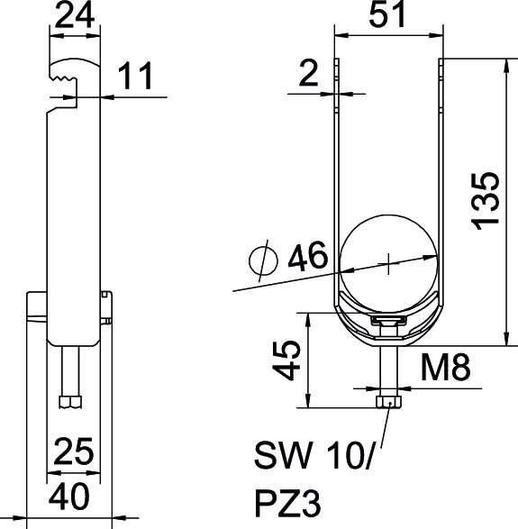 Bügelschelle 2056 F-Fuß, 2-fach, Kunststoffdruckwanne, FT