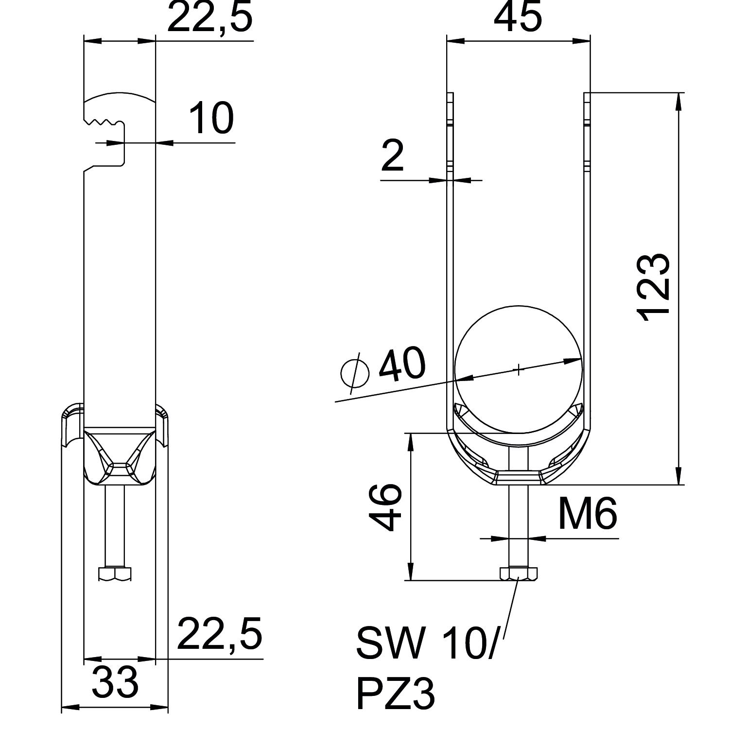 Bügelschelle mit F-Fuß, Metalldruckwanne mit gerundeten Kanten für Kabelschutz. Zur vertikalen und horizontalen Montage von 2 Einzelkabeln an Flacheisen. Mit 1-gängiger Schraube an Druckwanne, universeller Sechskant-Schraubenkopf SW10, mit Schlitz und Kreuzschlitz. Geeignet für Montage im Innen-und Außenbereich. Mehrere Kabel sollten durch Doppelwannen getrennt werden. Der Einsatz einer Gegenwanne wird empfohlen.