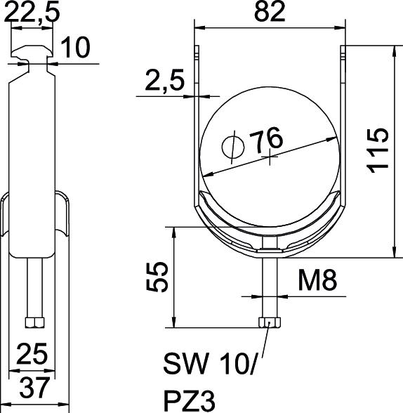 Bügelschelle mit Hammerkopf-Fuß, Metalldruckwanne mit gerundeten Kanten für Kabelschutz. Zur vertikalen und horizontalen Montage von 1 Einzelkabel an C-Profilschiene. Für Schlitzweite 16 - 17 mm. Mit 1-gängiger Schraube an Druckwanne, universeller Sechskant-Schraubenkopf SW10, mit Schlitz und Kreuzschlitz. Geeignet für Montage im Innen-und Außenbereich. Der Einsatz einer Gegenwanne wird empfohlen.