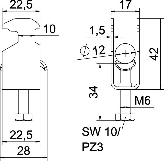 • Bügelschelle f. C-Profilschiene, Schlitzweite 16-17 mm