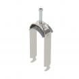 Bügelschelle mit Hammerkopf-Fuß, Kunststoffdruckwanne aus Polypropylen. Zur vertikalen und horizontalen Montage von 2 Einzelkabeln an C-Profilschiene. Für Schlitzweite 16 - 17 mm. Mit 1-gängiger Schraube an Druckwanne, universeller Sechskant-Schraubenkopf SW10, mit Schlitz und Kreuzschlitz. Geeignet für Montage im Innen- und Außenbereich. Mehrere Kabel sollten durch Doppelwannen getrennt werden. Der Einsatz einer Gegenwanne wird empfohlen.