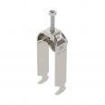 Bügelschelle mit Hammerkopf-Fuß, Metalldruckwanne mit gerundeten Kanten für Kabelschutz. Zur vertikalen und horizontalen Montage von 2 Einzelkabeln an C-Profilschiene. Für Schlitzweite 16 - 17 mm. Mit 1-gängiger Schraube an Druckwanne, universeller Sechskant-Schraubenkopf SW10, mit Schlitz und Kreuzschlitz. Geeignet für Montage im Innen- und Außenbereich. Mehrere Kabel sollten durch Doppelwannen getrennt werden. Der Einsatz einer Gegenwanne wird empfohlen.