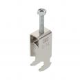 Bügelschelle mit Hammerkopf-Fuß, Metalldruckwanne mit gerundeten Kanten für Kabelschutz. Zur vertikalen und horizontalen Montage von 2 Einzelkabeln an C-Profilschiene. Für Schlitzweite 16 - 17 mm. Mit 1-gängiger Schraube an Druckwanne, universeller Sechskant-Schraubenkopf SW10, mit Schlitz und Kreuzschlitz. Geeignet für Montage im Innen- und Außenbereich. Mehrere Kabel sollten durch Doppelwannen getrennt werden. Der Einsatz einer Gegenwanne wird empfohlen.