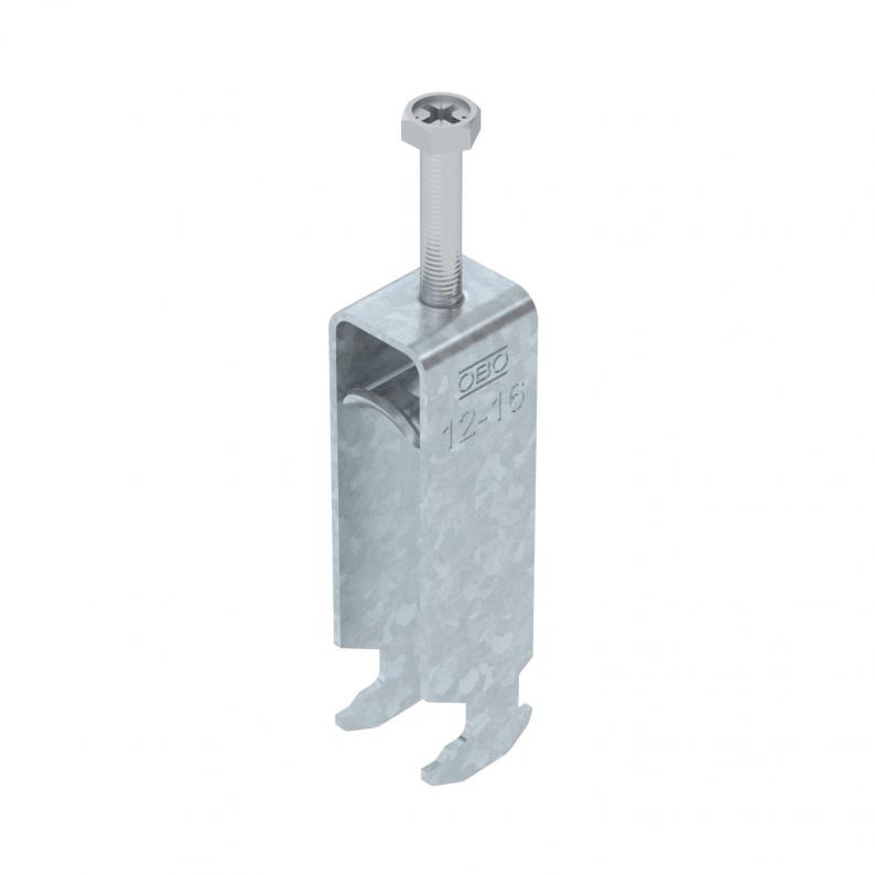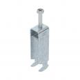Bügelschelle mit Hammerkopf-Fuß, Metalldruckwanne mit gerundeten Kanten für Kabelschutz. Zur vertikalen und horizontalen Montage von 3 Einzelkabeln an C-Profilschiene. Für Schlitzweite 16 - 17 mm. Mit 1-gängiger Schraube an Druckwanne, universeller Sechskant-Schraubenkopf SW10, mit Schlitz und Kreuzschlitz. Geeignet für Montage im Innen- und Außenbereich. Mehrere Kabel sollten durch Doppelwannen getrennt werden. Der Einsatz einer Gegenwanne wird empfohlen.