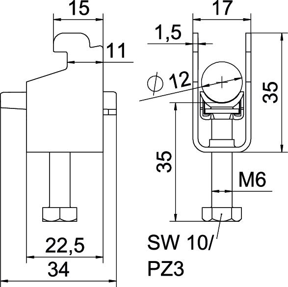 Bügelschelle mit N-Fuß, Kunststoffdruckwanne aus Polypropylen. Zur vertikalen und horizontalen Montage von 1 Einzelkabel an C-Profilschiene. Für Schlitzweite 11 - 12 mm. Mit 1-gängiger Schraube an Druckwanne, universeller Sechskant-Schraubenkopf SW10, mit Schlitz und Kreuzschlitz. Geeignet für Montage im Innen-und Außenbereich. Der Einsatz einer Gegenwanne wird empfohlen.