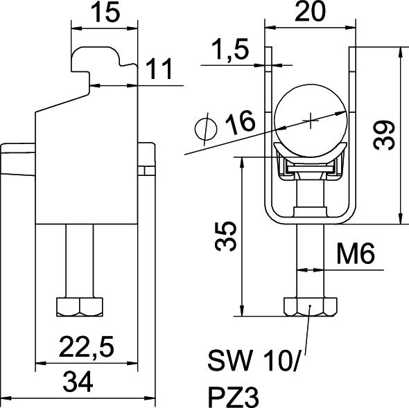 Bügelschelle mit N-Fuß, Kunststoffdruckwanne aus Polypropylen. Zur vertikalen und horizontalen Montage von 1 Einzelkabel an C-Profilschiene. Für Schlitzweite 11 - 12 mm. Mit 1-gängiger Schraube an Druckwanne, universeller Sechskant-Schraubenkopf SW10, mit Schlitz und Kreuzschlitz. Geeignet für Montage im Innen-und Außenbereich. Der Einsatz einer Gegenwanne wird empfohlen.