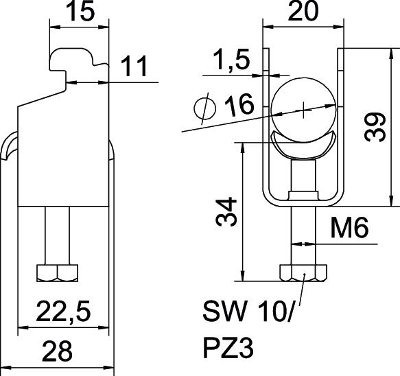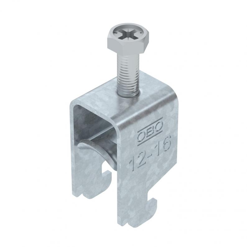 Bügelschelle mit N-Fuß, Metalldruckwanne mit gerundeten Kanten für Kabelschutz. Zur vertikalen und horizontalen Montage von 1 Einzelkabel an C-Profilschiene. Für Schlitzweite 11 - 12 mm. Mit 1-gängiger Schraube an Druckwanne, universeller Sechskant-Schraubenkopf SW10, mit Schlitz und Kreuzschlitz. Geeignet für Montage im Innen-und Außenbereich. Der Einsatz einer Gegenwanne wird empfohlen.