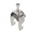 Bügelschelle mit U-Fuß, Kunststoffdruckwanne aus Polypropylen. Zur vertikalen und horizontalen Montage von 1 Einzelkabel an C-Profilschiene. Für Schlitzweite 18 - 22 mm. Mit 1-gängiger Schraube an Druckwanne, universeller Sechskant-Schraubenkopf SW10, mit Schlitz und Kreuzschlitz. Geeignet für Montage im Innen-und Außenbereich. Der Einsatz einer Gegenwanne wird empfohlen.