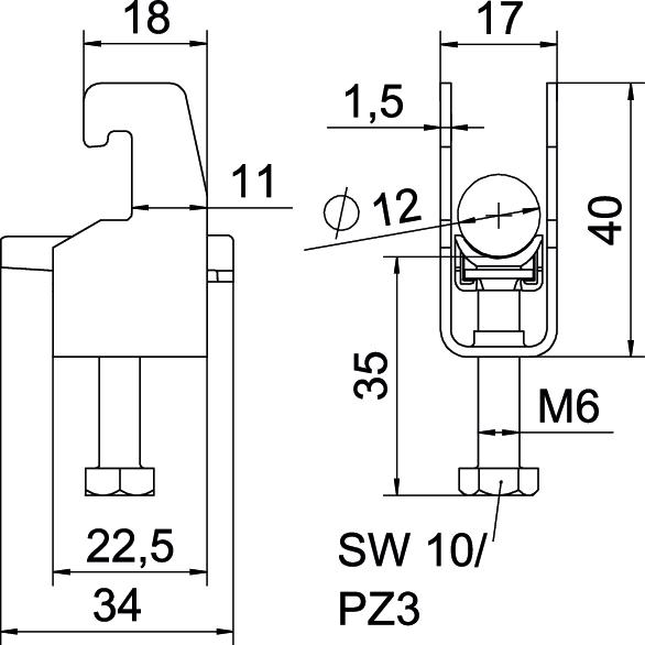 Bügelschelle mit U-Fuß, Kunststoffdruckwanne aus Polypropylen. Zur vertikalen und horizontalen Montage von 1 Einzelkabel an C-Profilschiene. Für Schlitzweite 18 - 22 mm. Mit 1-gängiger Schraube an Druckwanne, universeller Sechskant-Schraubenkopf SW10, mit Schlitz und Kreuzschlitz. Geeignet für Montage im Innen-und Außenbereich. Der Einsatz einer Gegenwanne wird empfohlen.