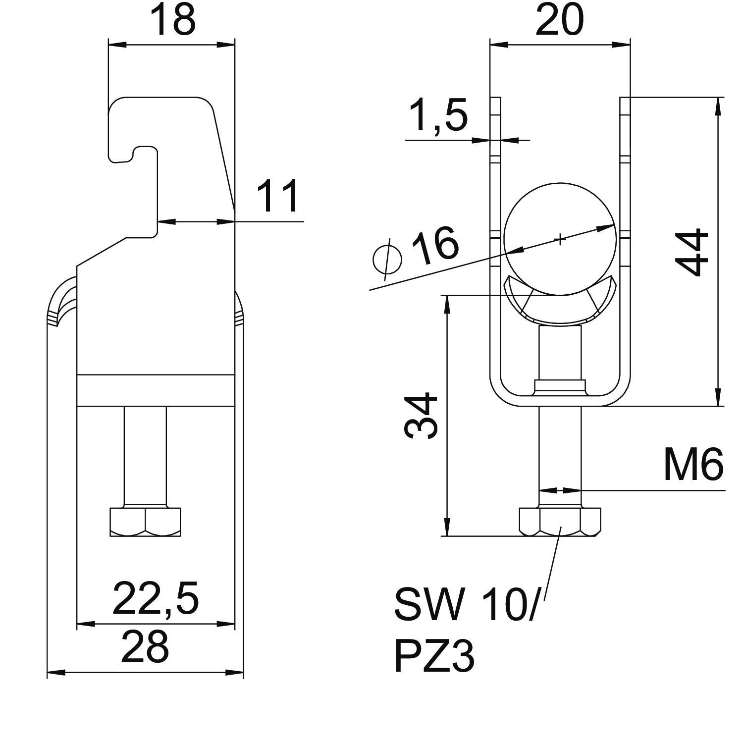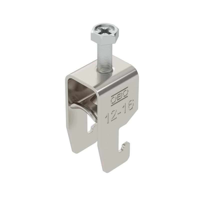 Bügelschelle mit U-Fuß, Metalldruckwanne mit gerundeten Kanten für Kabelschutz. Zur vertikalen und horizontalen Montage von 1 Einzelkabel an C-Profilschiene. Für Schlitzweite 18 - 22 mm. Mit 1-gängiger Schraube an Druckwanne, universeller Sechskant-Schraubenkopf SW10, mit Schlitz und Kreuzschlitz. Geeignet für Montage im Innen-und Außenbereich. Der Einsatz einer Gegenwanne wird empfohlen.