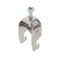 Bügelschelle mit U-Fuß, Metalldruckwanne mit gerundeten Kanten für Kabelschutz. Zur vertikalen und horizontalen Montage von 1 Einzelkabel an C-Profilschiene. Für Schlitzweite 18 - 22 mm. Mit 1-gängiger Schraube an Druckwanne, universeller Sechskant-Schraubenkopf SW10, mit Schlitz und Kreuzschlitz. Geeignet für Montage im Innen-und Außenbereich. Der Einsatz einer Gegenwanne wird empfohlen.