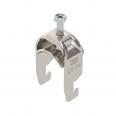 Bügelschelle mit U-Fuß, Metalldruckwanne mit gerundeten Kanten für Kabelschutz. Zur vertikalen und horizontalen Montage von 1 Einzelkabel an C-Profilschiene. Für Schlitzweite 18 - 22 mm. Mit 1-gängiger Schraube an Druckwanne, universeller Sechskant-Schraubenkopf SW10, mit Schlitz und Kreuzschlitz. Geeignet für Montage im Innen-und Außenbereich. Der Einsatz einer Gegenwanne wird empfohlen.