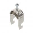 Bügelschelle mit U-Fuß, Metalldruckwanne mit gerundeten Kanten für Kabelschutz. Zur vertikalen und horizontalen Montage von 1 Einzelkabel an C-Profilschiene. Für Schlitzweite 18 - 22 mm. Mit 1-gängiger Schraube an Druckwanne, universeller Sechskant-Schraubenkopf SW10, mit Schlitz und Kreuzschlitz. Geeignet für Montage im Innen-und Außenbereich. Der Einsatz einer Gegenwanne wird empfohlen.