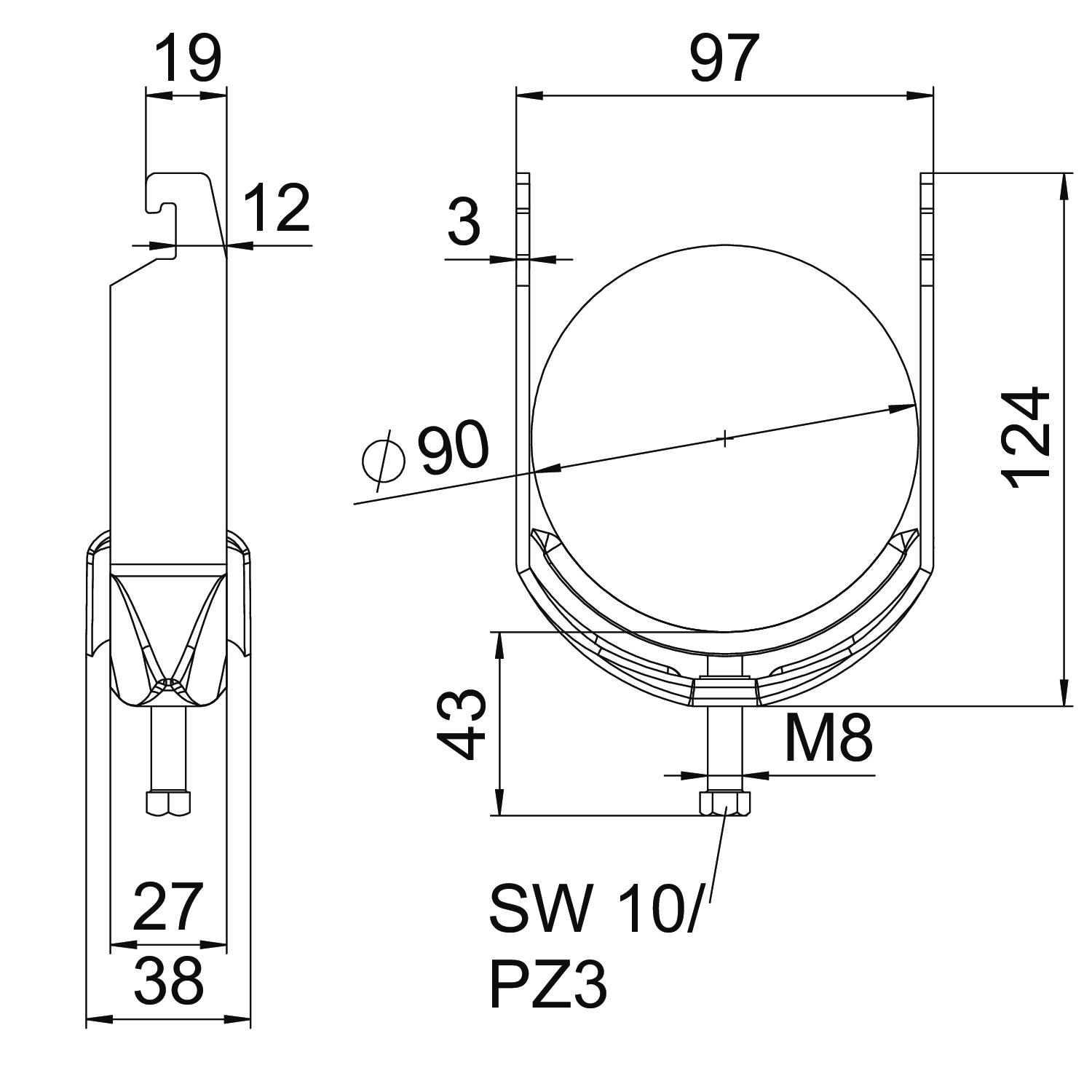 Bügelschelle mit U-Fuß, Metalldruckwanne mit gerundeten Kanten für Kabelschutz. Zur vertikalen und horizontalen Montage von 1 Einzelkabel an C-Profilschiene. Für Schlitzweite 18 - 22 mm. Mit 1-gängiger Schraube an Druckwanne, universeller Sechskant-Schraubenkopf SW10, mit Schlitz und Kreuzschlitz. Geeignet für Montage im Innen-und Außenbereich. Der Einsatz einer Gegenwanne wird empfohlen.