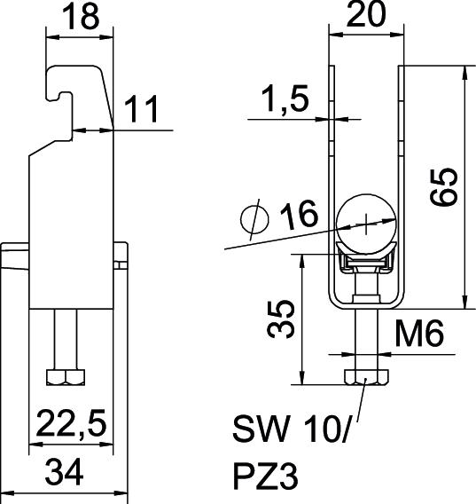Bügelschelle mit U-Fuß, Kunststoffdruckwanne aus Polypropylen. Zur vertikalen und horizontalen Montage von 2 Einzelkabeln an C-Profilschiene. Für Schlitzweite 18 - 22 mm. Mit 1-gängiger Schraube an Druckwanne, universeller Sechskant-Schraubenkopf SW10, mit Schlitz und Kreuzschlitz. Geeignet für Montage im Innen- und Außenbereich. Mehrere Kabel sollten durch Doppelwannen getrennt werden. Der Einsatz einer Gegenwanne wird empfohlen.