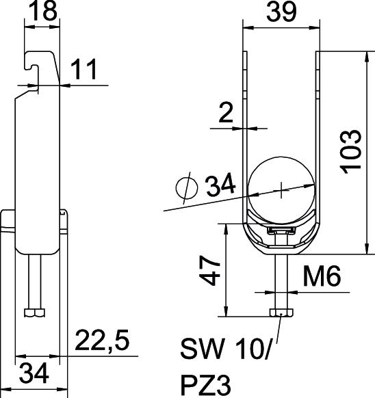 Bügelschelle mit U-Fuß, Kunststoffdruckwanne aus Polypropylen. Zur vertikalen und horizontalen Montage von 2 Einzelkabeln an C-Profilschiene. Für Schlitzweite 18 - 22 mm. Mit 1-gängiger Schraube an Druckwanne, universeller Sechskant-Schraubenkopf SW10, mit Schlitz und Kreuzschlitz. Geeignet für Montage im Innen- und Außenbereich. Mehrere Kabel sollten durch Doppelwannen getrennt werden. Der Einsatz einer Gegenwanne wird empfohlen.