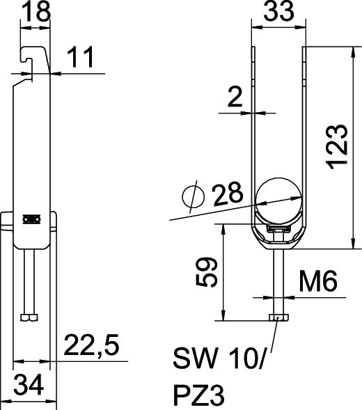 Bügelschelle mit U-Fuß, Kunststoffdruckwanne aus Polypropylen. Zur vertikalen und horizontalen Montage von 3 Einzelkabeln an C-Profilschiene. Für Schlitzweite 18 mm oder 22 mm. Mit 1-gängiger Schraube an Druckwanne, universeller Sechskant-Schraubenkopf SW10, mit Schlitz und Kreuzschlitz. Geeignet für Montage im Innen- und Außenbereich. Mehrere Kabel sollten durch Doppelwannen getrennt werden. Der Einsatz einer Gegenwanne wird empfohlen.