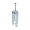 Bügelschelle mit U-Fuß, Metalldruckwanne mit gerundeten Kanten für Kabelschutz. Zur vertikalen und horizontalen Montage von 3 Einzelkabeln an C-Profilschiene. Für Schlitzweite 18 - 22 mm. Mit 1-gängiger Schraube an Druckwanne, universeller Sechskant-Schraubenkopf SW10, mit Schlitz und Kreuzschlitz. Geeignet für Montage im Innen- und Außenbereich. Mehrere Kabel sollten durch Doppelwannen getrennt werden. Der Einsatz einer Gegenwanne wird empfohlen.