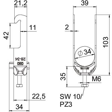 Bügelschelle mit W-Fuß, Kunststoffdruckwanne aus Polypropylen. Zur vertikalen und horizontalen Montage von 1 Einzelkabel an Winkeleisen mit 40 mm Schenkellänge. Mit 1-gängiger Schraube an Druckwanne, universeller Sechskant-Schraubenkopf SW10, mit Schlitz und Kreuzschlitz. Geeignet für Montage im Innen-und Außenbereich. Der Einsatz einer Gegenwanne wird empfohlen.