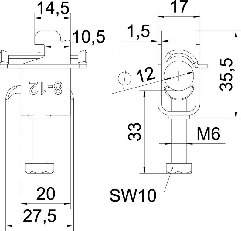 | für Schiene mit Schlitzweite (mit Intervall) max. | 12 mm |