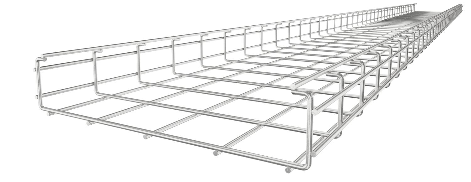 Gitterrinne in C-Form aus punktgeschweißten Stahldrähten in der Seitenhöhe 50 mm.