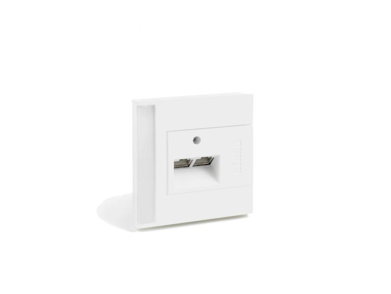 Signa In Datenblende 80 x 80 mm für Cat. 6-Datengeräte mit 2 Auslässen, optisch passend zu den Kanalsteckdosen Signa In. 2-teilige Abdeckung/Blende, bestehend aus Blende/Rahmen und Zentralplatte.