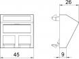 Datentechnikträger mit schrägem Auslass und Verschlussschieber zur Aufnahme von zwei Datentechnik-Anschlussmodulen mit RJ45-Buchse. Die Rastbefestigung eignet sich für den waagerechten und senkrechten Einbau in die Systemumgebung. Typ EP hat eine spezielle Modulaufnahme und ist für eine indirekte Befestigung der Daten-Anschlussmodule in der Montageöffnung ausgelegt.