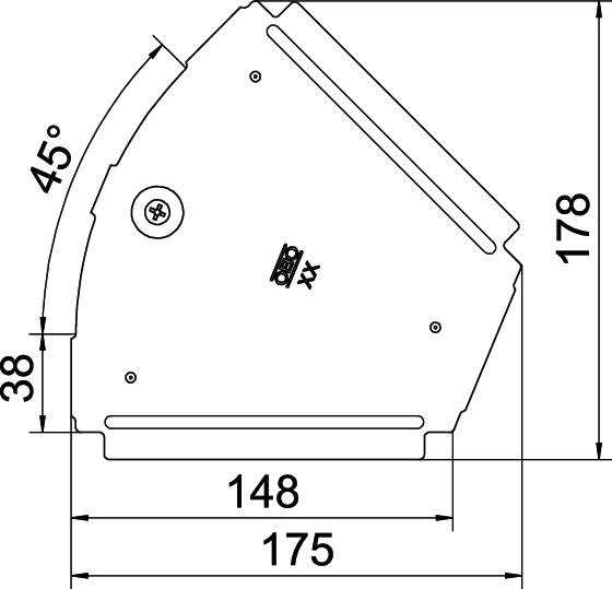 Deckel für Formteil Bogen 45° für rastbare und schraubbare Kabelrinnen im Innen- und Außenbereich, zum Schutz der Kabel vor Beschädigungen und Schmutz. Befestigung mit vormontiertem Drehriegel und durch Auflage des Streckendeckels. Passend für alle Seitenhöhen.
