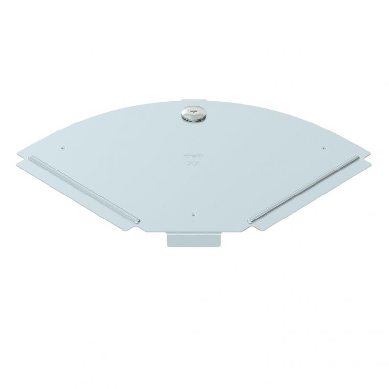 Deckel für Formteil Bogen 90° für rastbare und schraubbare Kabelrinnen im Innenbereich, zum Schutz der Kabel vor Beschädigungen und Schmutz. Befestigung mit vormontiertem Drehriegel und durch Auflage des Streckendeckels. Passend für alle Seitenhöhen.