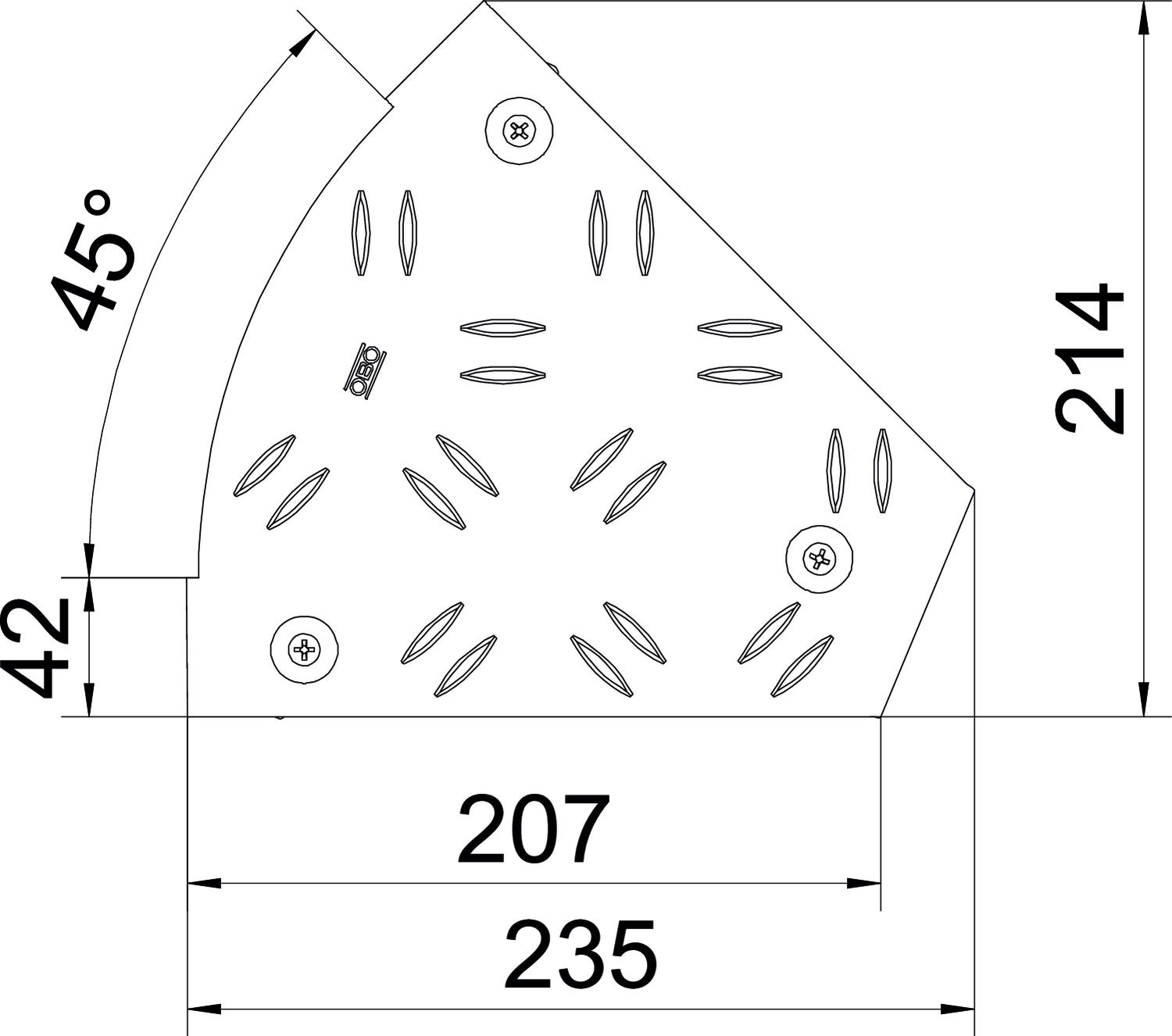 Deckel für 45°-Bogen mit vormontierten Drehriegeln.