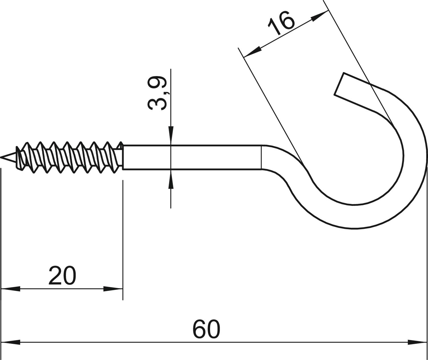 Deckenhaken mit gewalztem Holzschraubengewinde.